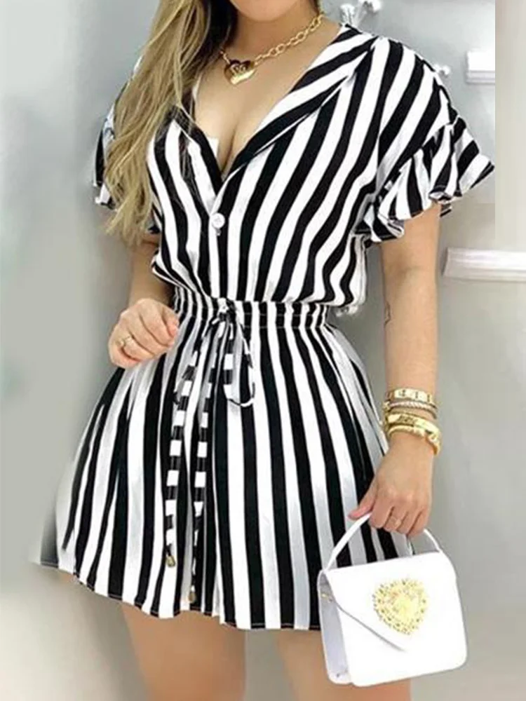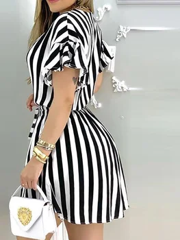 Robe chemise rayée à volants pour femmes,